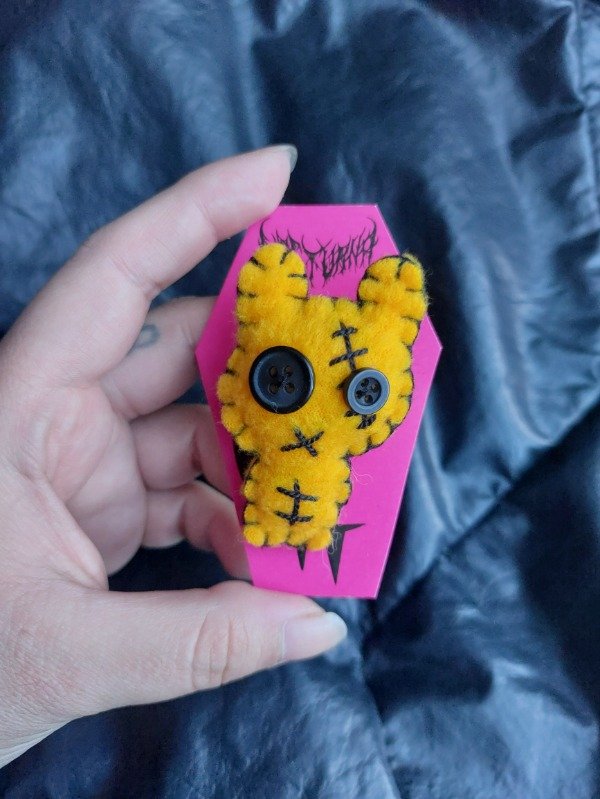 Éste modelo tiene un alfiler de gancho atrás para usarlo como pin.